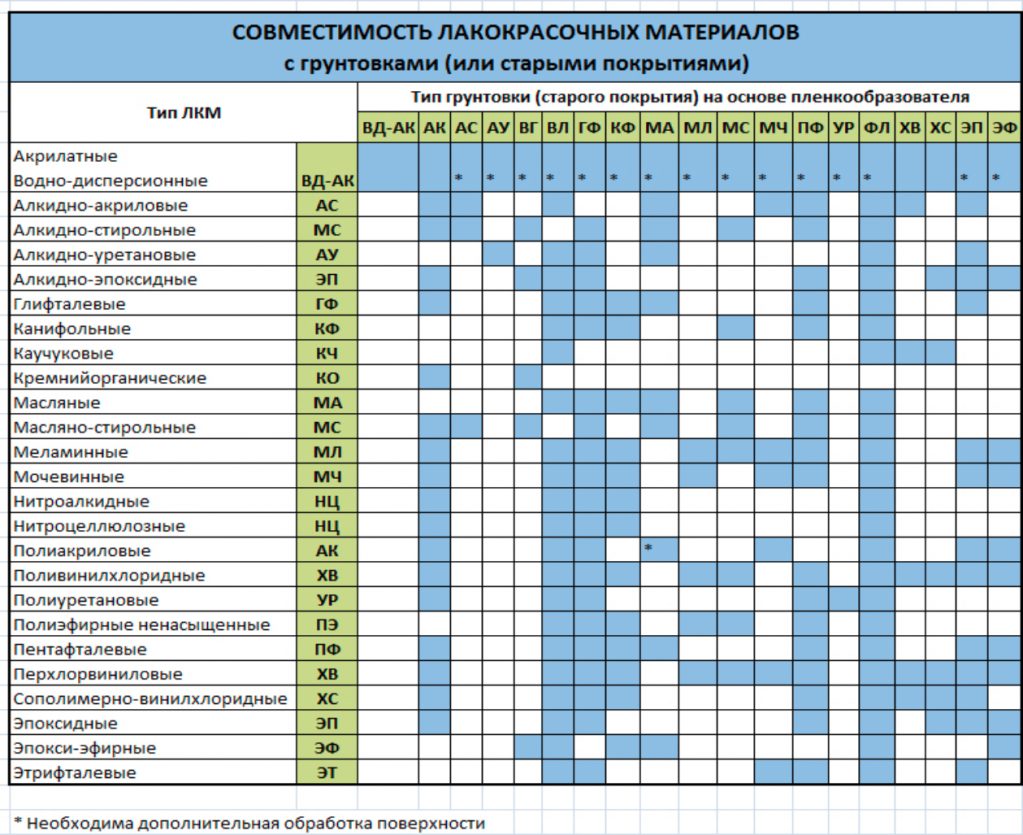Si la finition se décolle à certains endroits, cela signifie que la base de l'apprêt est mal nettoyée. Avec GF 021 les peintures et vernis des groupes sont combinés : NTs, MCh, PF, EP, KhV, UR, PE, MA, HS.