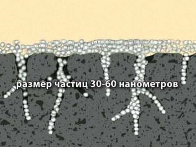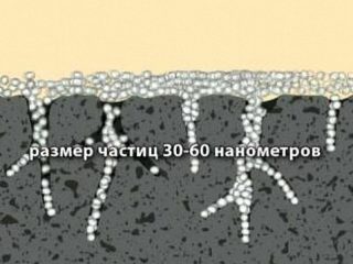 Les composés pénètrent bien dans les surfaces à pores larges et petits. Dans le second cas, des émulsifiants sont ajoutés à la formulation de sorte que la taille des particules ne dépasse pas 20 à 50 nm. Pour les sols grossièrement dispersés, la taille des particules se situe entre 100 et 200 nm.