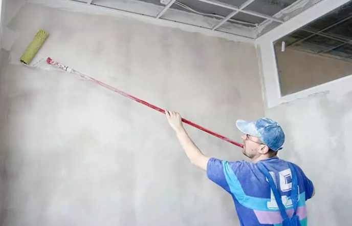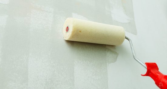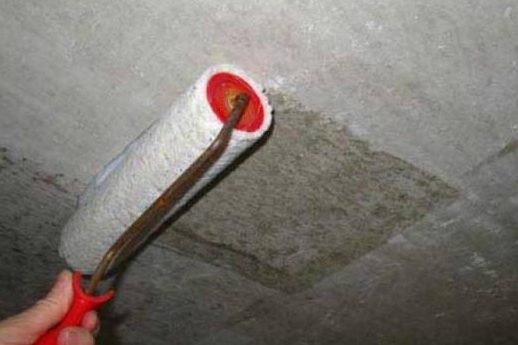L'apprêt est appliqué pistolets, rouleau, brosse. De longues poignées sont préparées pour ces derniers outils si la hauteur de la pièce est grande ou s'ils fonctionnent au plafond. Il est préférable de ne pas utiliser de pinceau pour l'application pour la peinture., puisque le sol est mélangé à de la poussière et que les villosités laissent des rainures convexes sur le plan.