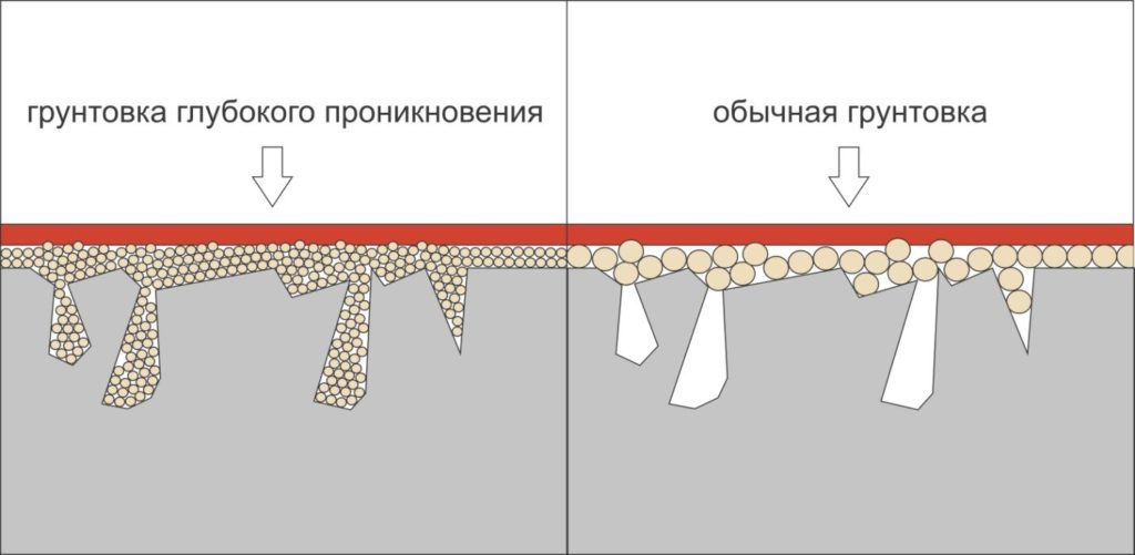 Les compositions d'imprégnation sont présentées sur le marché sous la forme solutions de dispersion dans l'eau, avec lequel la base est traitée avant le nivellement ou la finition.