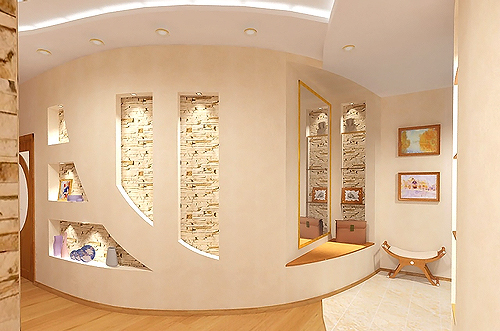 - installation de niches incurvées dans les murs, revêtement d'armoire et de meubles intégrés.