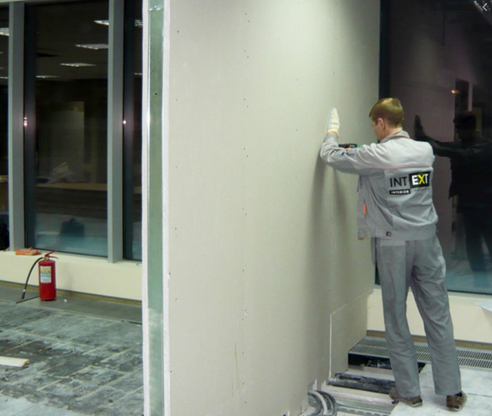 - G / le carton n'est pas placé lors de la finition du sol, car le matériau n'a pas durabilité pour de telles charges. La fibre de gypse résiste aux efforts des ménages, elle ne s'effondre donc pas. Le GKL dans le gymnase deviendra inutilisable à cause de l'impact du ballon sur les murs, et le GKL restera intact.