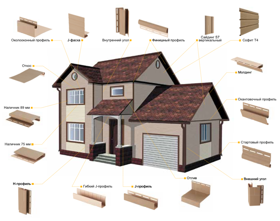 Il existe des éléments plus spécialisés, comme un soffite pour coudre des corniches, des bandes de bordure, des reflux et plus encore.