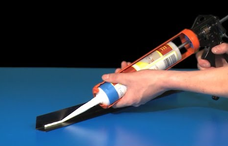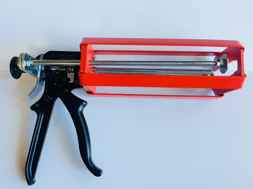 - Un scellant dans un tube en plastique est placé dans un pistolet tubulaire ou squelettique.
