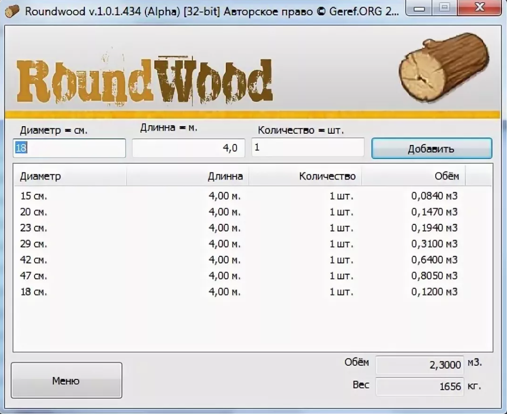 - pour calculer la quantité de bois rond lors de la construction de cabanes en rondins à partir de bois scié arrondi et non transformé;