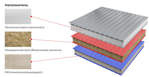 Selon le matériau de la coque inclus dans le sandwich, on distingue les panneaux : SIP, PVC, métal.