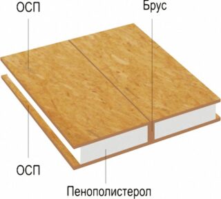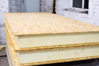 Le sandwich SIP a une coque en aggloméré - aggloméré, panneau de fibres, panneau de particules, etc. Leur structure est constituée de copeaux de bois, de sciure de bois, de copeaux. Les déchets de bois compressés sont collés sous pression avec divers adhésifs. Plus souvent que d'autres, ils sont utilisés dans l'autoproduction de sandwichs.