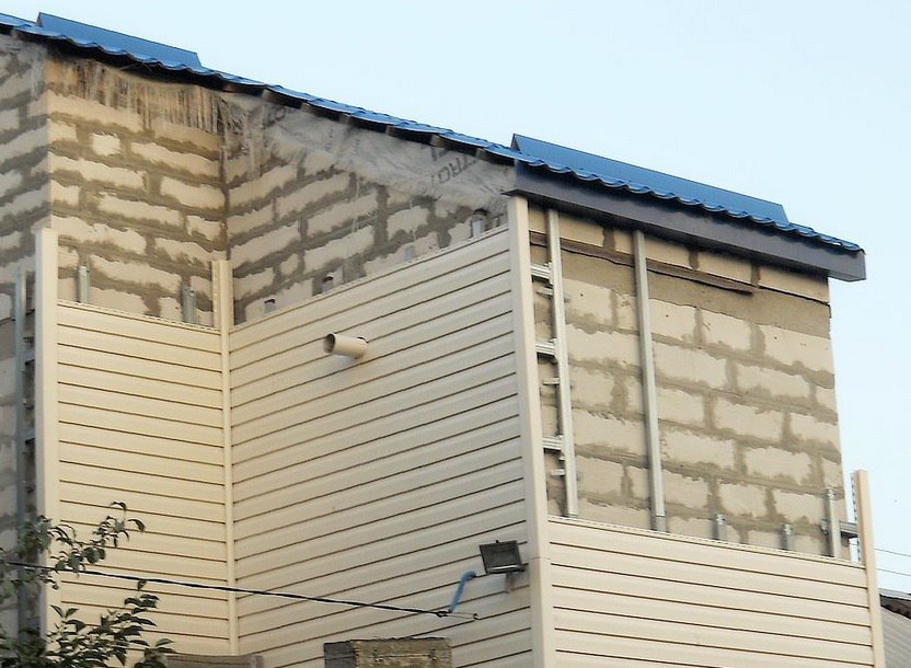 Sous un certain angle, le joint des panneaux superposés devient visible. Au fur et à mesure que les températures changent, la connexion sera toujours moins ou plus perceptible. L'installation de la bande supérieure se fait du côté de l'ombre par rapport à l'élément plat inférieur.