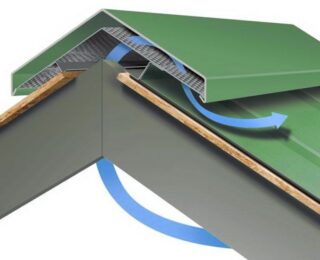 - L'installation correcte de la crête sur le carton ondulé est responsable du fonctionnement efficace de la ventilation. L'air chargé de vapeur s'écoule autour de la planche de sorte qu'il est littéralement extrait de sous le platelage du toit.