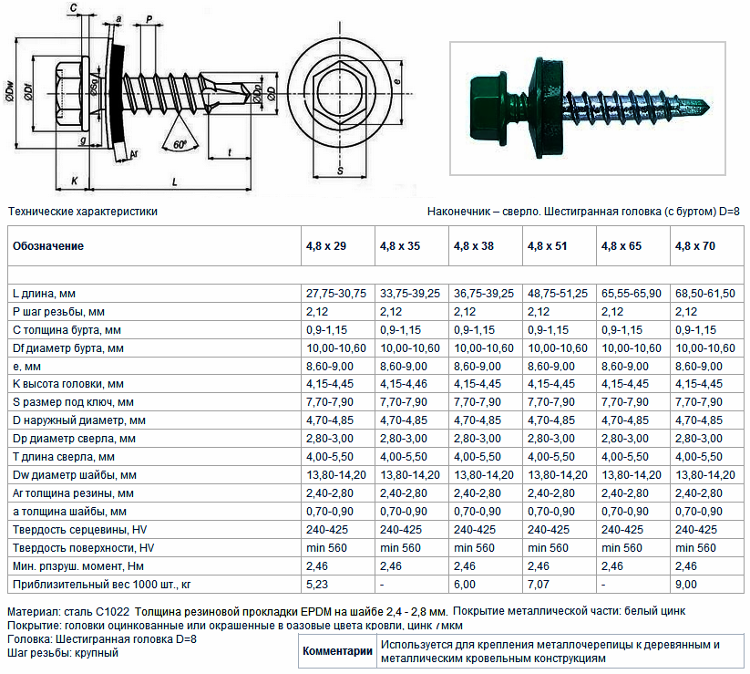 - consommation de vis autotaraudeuses pour 1 m² de tôle profilée - 8-12 pcs.