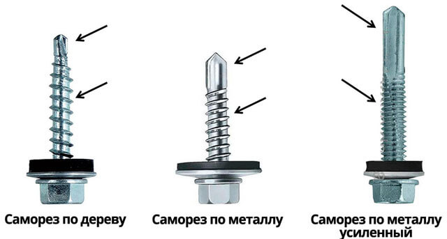 - Force moyenne... Conçu pour être fixé sur un cadre en bois. Ils ont un pas de filetage accru et une grande longueur. Avant la fixation, des trous sont pratiqués dans les tôles pour adoucir l'entrée.