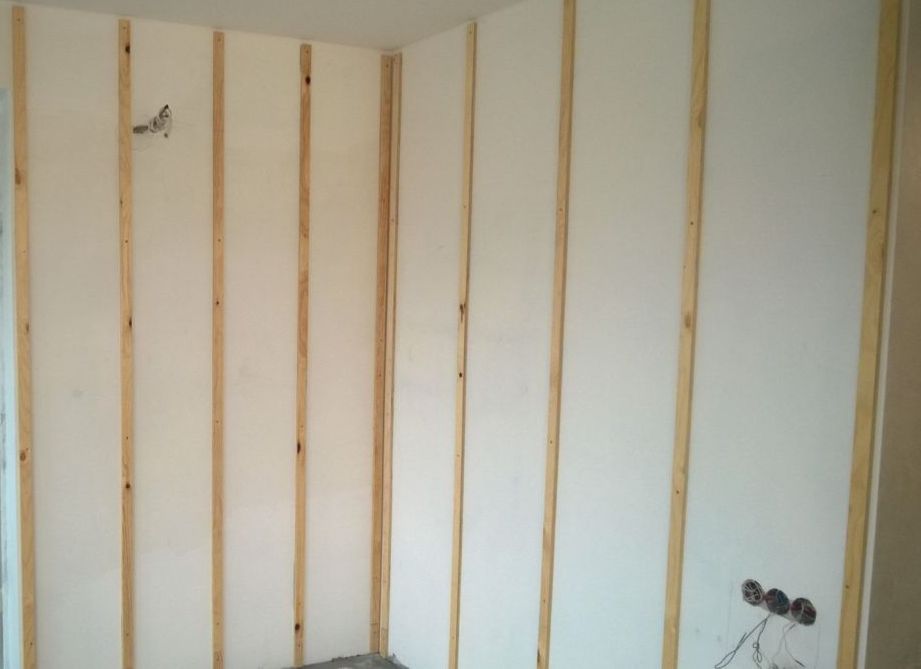 - Des murs enlever la poussière, la saleté et les vieux revêtements, si nécessaire, bouchez les fissures. L'apprêt n'est pas requis lors de l'installation de panneaux sur un liteau.