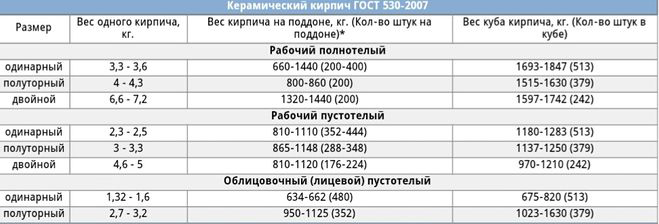 - Poids volumique. Corpulent la brique a des indicateurs 1,6 - 1,9 t/m³, creux - 1,1 - 1,45 t / m³... La caractéristique est déterminée par le volume des pores internes dans la composition du produit.
