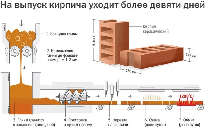 Les briques sont fabriquées de différentes manières. Moulage en plastique prévoit la création d'éléments par pressage à partir de la matière première avec une humidité comprise entre 15 et 21 %. Méthode semi-sèche comprend la fabrication à partir d'un mélange d'argile humidité 8 - 14%.
