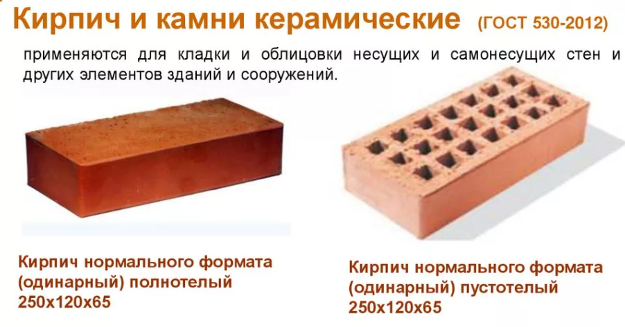 La brique est produite sous forme de pièces de la forme géométrique correcte pour la pose des éléments porteurs et décoratifs du bâtiment. La brique en céramique est une pierre rouge artificielle fabriquée à partir d'ingrédients naturels. C'est le matériau le plus courant pour la construction de bâtiments dans des conditions de forte vaporisation d'humidité et de chaleur. Les types de pierres se distinguent par la méthode de fabrication, les matières premières, les formes et les tailles.