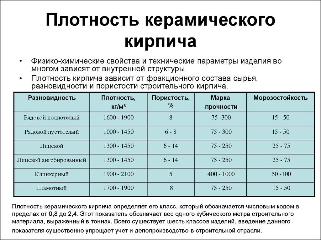 Poids des pierres dépend de la densité, du volume des vides, au total il existe plusieurs catégories en poids de briques en céramique :