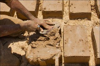 Faire des briques demande de l'espace. Pour cela, un revêtement de sol est construit. Il est déconseillé de sécher la pierre en plein soleil : le matériau sèche de manière inégale, le risque d'être exposé à la pluie subsiste.