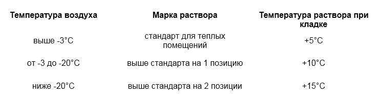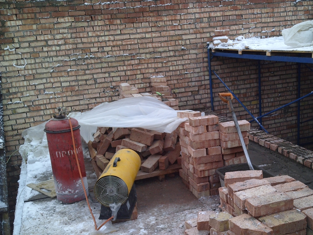 La température pour la pose de briques dans la rue doit être supérieure à zéro, mais si une vague de froid est arrivée dans la région, un mélange chauffé est utilisé, des ingrédients secs sont introduits pendant la cuisson et la croûte de glace et la neige collée sont vérifiées et enlevées sur le briques.