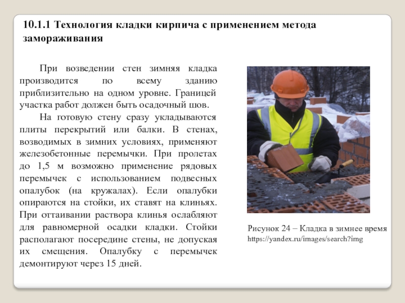Lors de la préparation de la composition pour le travail sous le gel utiliser des additifs... La maçonnerie en hiver est réalisée dans le respect des réceptions: