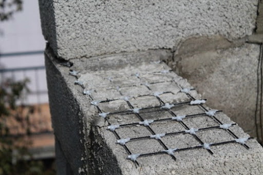 - Maille de maçonnerie - avec des alvéoles de 50 * 50 mm. Le treillis est placé à la surface des blocs et coulé avec une couche de mortier afin qu'il le recouvre complètement.