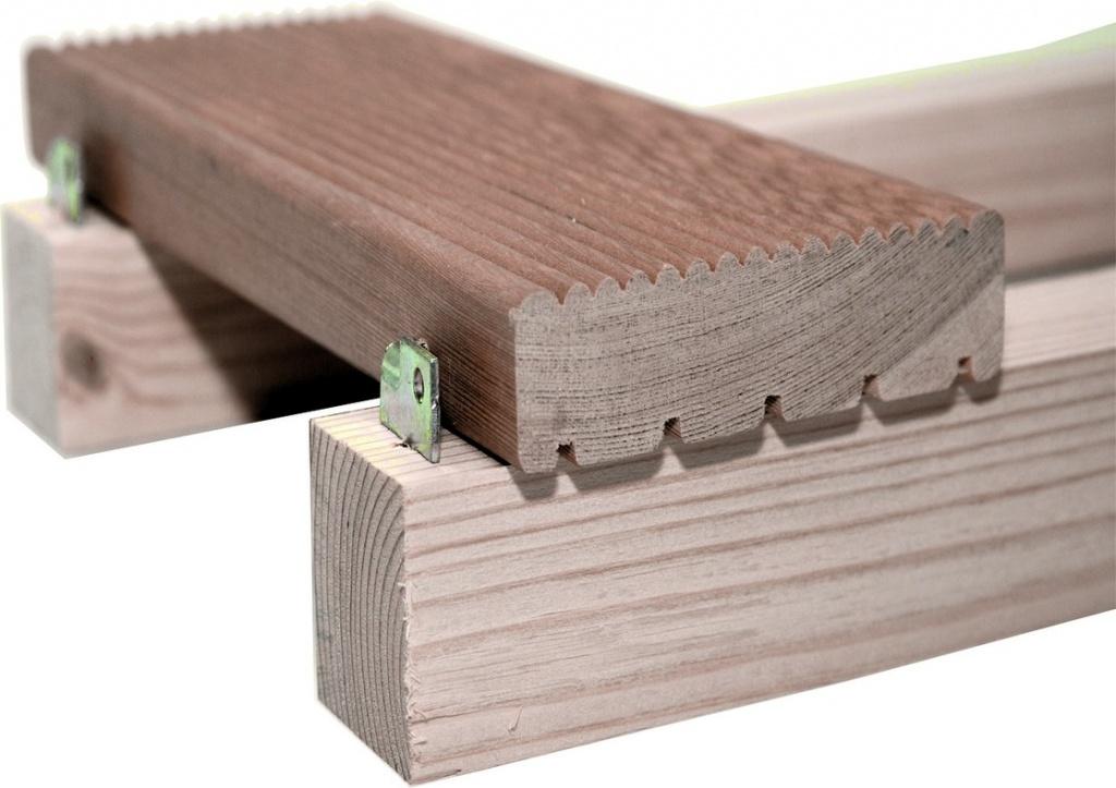 Le mode de fixation de la lame de terrasse est choisi en tenant compte des conditions d'exploitation. Au cours du processus, le bois sèche ou se dilate sous l'influence de l'humidité. Les fixations pour terrasse doivent créer et maintenir un écart technologique des paramètres spécifiés entre les éléments. Un écart plus petit entraînera un gonflement des extrémités de la planche et un grand écart se transformera en fissures laides.