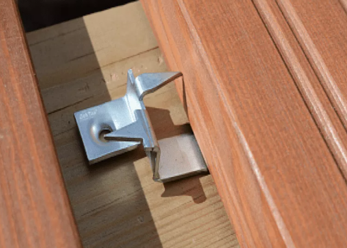 - Clips. Les éléments sont en plastique ou en acier, principalement en aluminium ou en acier avec une couche de zinc anodisé. Un carré de plancher de terrasse est généralement compté sur 22 pièces. Par exemple, pour une superficie de 12 m², il vous faudra acheter 264 clips (12 x 22).