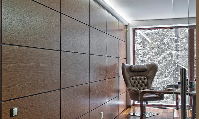 Des panneaux stratifiés sont utilisés pour la finition des surfaces horizontales et verticales à l'intérieur des bâtiments, dont la forme pentes de portes et fenêtres... Le matériau est fixé lors de la fabrication partitions pour l'attribution de zones dans les appartements, bureaux, lieux publics.