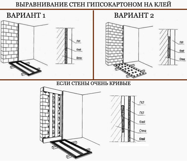 Dans le premier cas, vous pouvez également isoler la pièce, installer une protection contre le bruit extérieur, l'humidité, la vapeur. Cadre pousse le mur dans la pièce de 7 à 10 cm, par conséquent, dans les petites pièces qu'ils utilisent manière sans cadre... Les murs sont soigneusement nivelés avec du plâtre sous les feuilles.