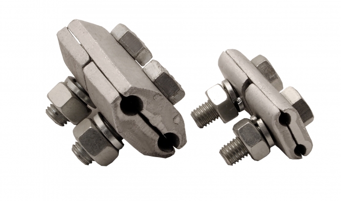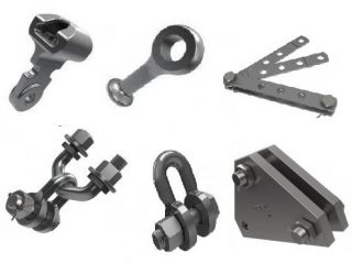 Utilisé par pour connecter des fils et des câbles aux guirlandes de tirage... Cela comprend, par exemple, des pinces telles que des pinces à coin (elles peuvent être conçues pour différentes sections de fil) et boulonnées. Ils sont soumis à des exigences strictes en termes de taille et de niveau de résistance. Ces paramètres doivent correspondre à ceux de la chaîne tirée. Les pinces doivent fournir un contact électrique stable et également gérer le transfert des contraintes des câbles recouverts de glace ou soufflés par le vent.