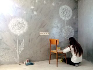 - en créant grands motifs complexes vous pouvez utiliser des pigments dans des seaux, en les appliquant avec des pinceaux et des rouleaux;