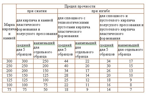 Le degré de résistance des briques en céramique est déterminé par le taux de compression en flexion. Il est désigné par la lettre M, complétée par un code numérique indiquant le niveau de charge qu'une brique ordinaire peut supporter de 1 centimètre carré. A ce jour, 8 grades ont été établis en termes de résistance - de 75 à 200 avec un pas de 25 et surtout des briques résistantes - M-250 et M300.