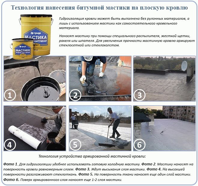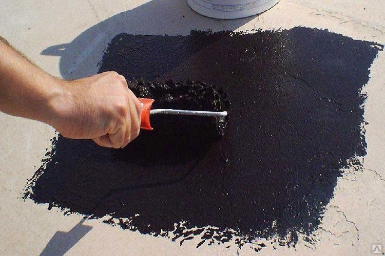 Le mastic bitumineux pour l'imperméabilisation est appliqué sur le métal rouillé sur un plan de toit humide. Un mélange de haute qualité prend rapidement, sèche et contient des fils de renforcement pour compenser les vibrations de la toiture ou de la base de la route.