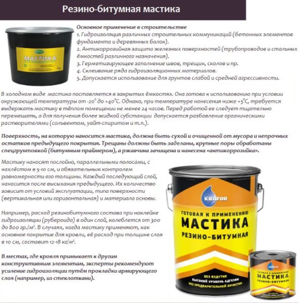 Caoutchouc bitumineux les matériaux contiennent des miettes de goudron dans la structure, ce qui confère à la masse des qualités améliorées sous la forme d'une flexibilité, d'une extensibilité et d'une résistance accrues aux influences extérieures.