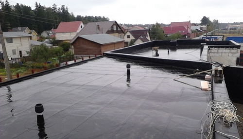 - une couche d'une membrane de renforcement est placée dessus, les coutures sont collées avec un ruban spécial, elle est collée avec du bitume;