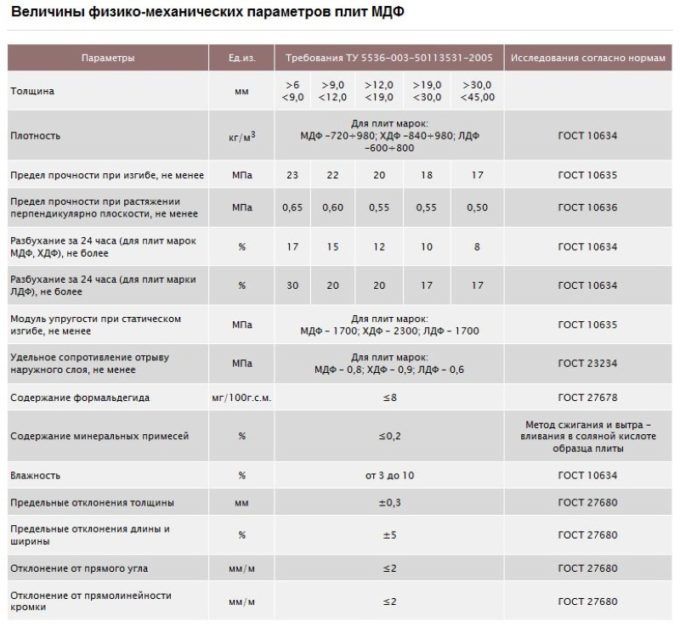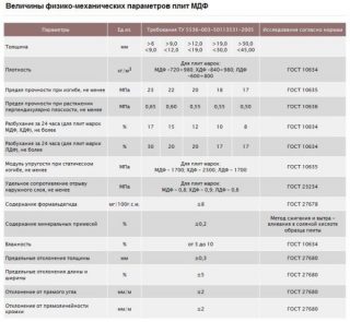 La densité du matériau est de l'ordre de 780 ± 20 kg / m³. Produire des feuilles de LDF, qui se caractérisent par une faible densité (200 - 600 kg / m³). Le matériel marqué avec NDF a un taux accru (plus de 800 kg/m³).