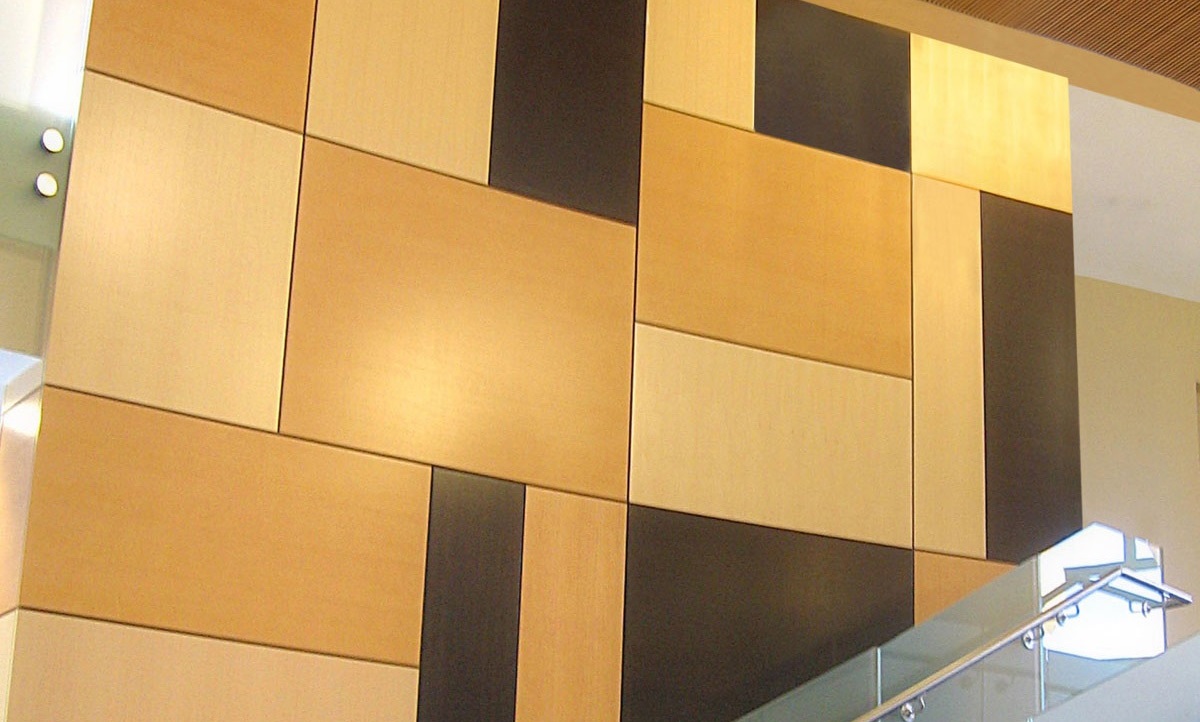 Différents types de matériaux décoratifs sont appliqués sur les panneaux :