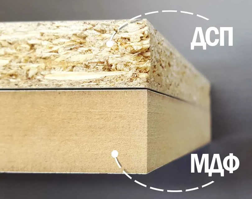 Décodage MDF : fraction fine (panneaux de fibres à densité moyenne). En termes de respect de l'environnement, le matériau est classé dans la classe d'émission E1, lorsque 100 g de composition sèche ne doivent pas contenir plus de 8 mg de formaldéhyde.