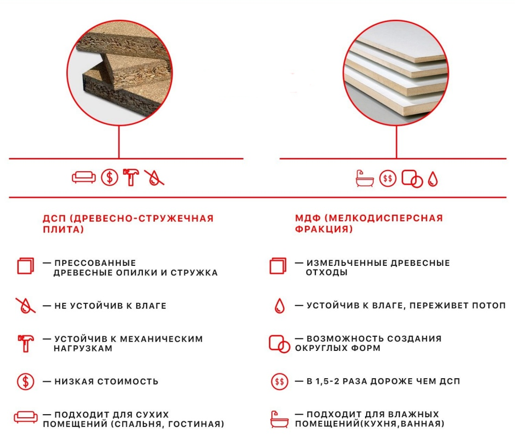 Du MDF et des panneaux de particules, le premier matériau est plus adapté à la décoration de la maison.