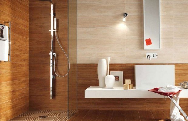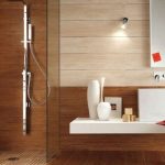 - Pour salle de bain. À l'intérieur, des jets d'eau pénètrent dans les murs, c'est pourquoi des matériaux peu sensibles à l'humidité sont utilisés. Il est préférable de prendre du MDF laminé, qui est traité des deux côtés et un film protecteur est installé sur les sections latérales. Lors de la coupe, des extrémités non fermées apparaissent. Ils doivent être peints avec un composé protecteur. Les joints entre le sol et le plafond sont recouverts d'un socle.