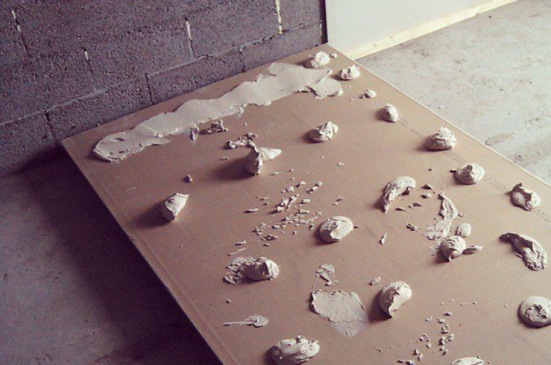- Appliquez de la colle en fine couche sur la plaque de plâtre ou étalez-la en points sur la surface si les irrégularités sont importantes.