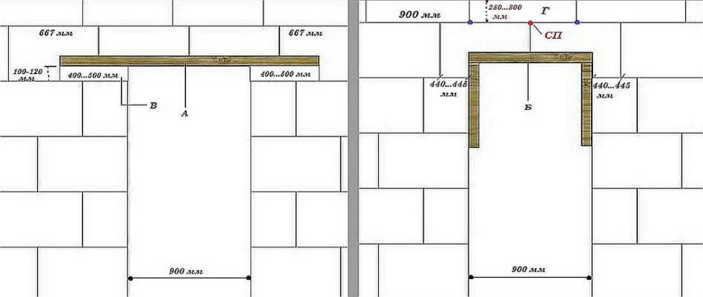 Aménagement d'une largeur de porte jusqu'à 900 mm autorisé à mener sans construction supplémentaire de structures de support... Cependant, l'ordre doit être strictement respecté afin que des espaces ou des blocs inutiles ne se forment pas entre la toile de la future porte. Par conséquent, il est si important de développer un projet avec des dessins.