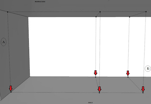 Après durcissement le sol est sans poussière et apprêté un moyen de pénétration profonde. De plus, il est appliqué balisage, selon les dessins, indiquant l'emplacement des portes. Le traceur laser axial transfère les lignes du projet aux murs et au plafond.