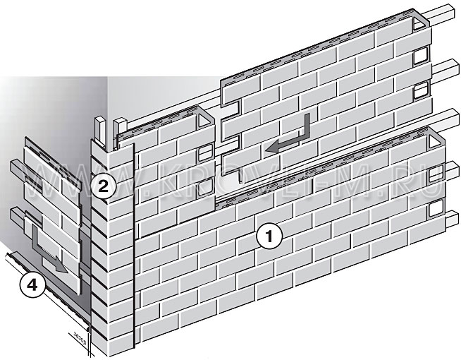- des linteaux horizontaux seul le plus bas est requis sous la barre de départ et autour des fenêtres et des portes ;