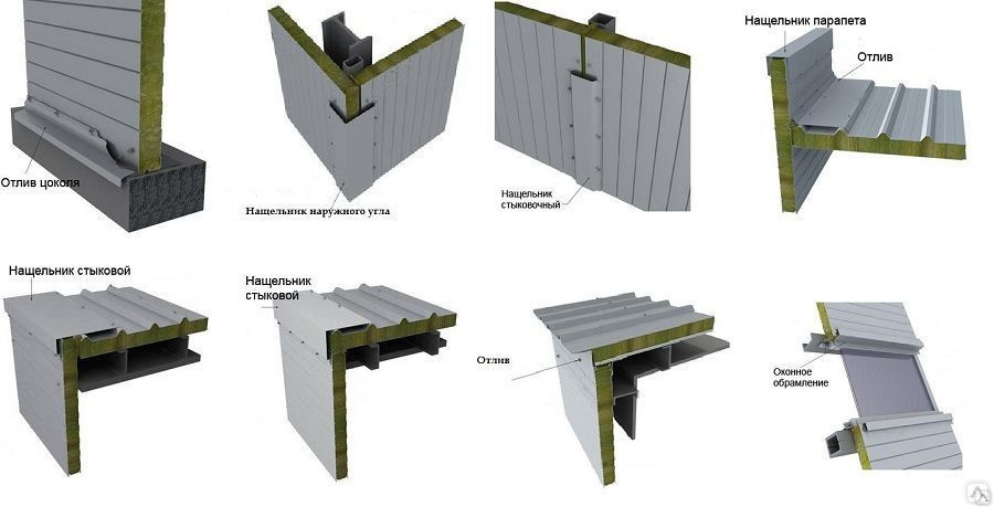 Cadre peut être constitué de poteaux en bois, en métal ou en béton armé. Les principaux coûts de main-d'œuvre tombent sur construction de la fondation et construction du squelette pour les panneaux... L'installation de sandwichs unifiés est rapide, mais plus de temps est consacré à l'étanchéité et au scellement des joints, à la fixation de bandes supplémentaires et de bandes de couverture.