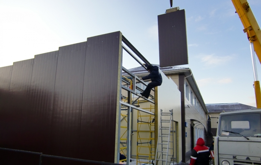Dans le cas de l'utilisation de sandwichs, le cadre est réglé strictement en fonction des dimensions des panneaux., ils sont apportés prêts à l'emploi, installés avec une isolation prête à l'emploi sur les crémaillères et les linteaux. La technologie d'assemblage de panneaux sandwich se réduit à l'assemblage rapide de structures prêtes à l'emploi.
