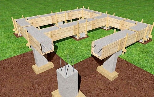 - De colonne - cette option est utilisée lors de la construction de bâtiments en plaine, dans les zones inondables où le niveau de la nappe phréatique est trop élevé. La fondation est constituée de poteaux en brique ou en béton armé, reliés en partie supérieure par un grillage. La structure est conçue pour un faible poids, elle est donc tout à fait appropriée pour un bâtiment à ossature.