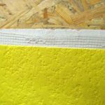 - Vérifiez la verticalité de la dalle et fixez-la à la planche de fond de cerclage avec des vis. Ensuite, les fixations sont effectuées de chaque côté et le long du bord latéral par incréments de 15 cm.