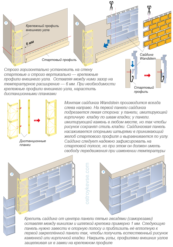 Il est impossible de mettre les panneaux de travers, donc l'installation du revêtement de sous-sol sur une fondation avec une pente se fait selon certaines règles. Avec une grande pente du site, le sous-sol est divisé en sections, de sorte que chacune est recrutée selon son propre schéma. Un profil en H est utilisé pour la séparation.
