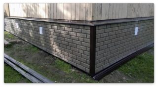 Le concept de placage spécifiquement pour le sous-sol est conditionnel. Des bandes de revêtement peuvent être fixées au socle et finir toute la façade du bâtiment avec. Utilisez des panneaux métalliques et du vinyle.