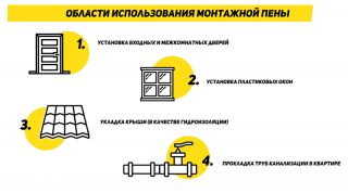 La mousse est utilisée lors de l'installation de fenêtres en bois et en plastique (PVC), car le matériau n'absorbe pas l'eau, mais conduit la vapeur.